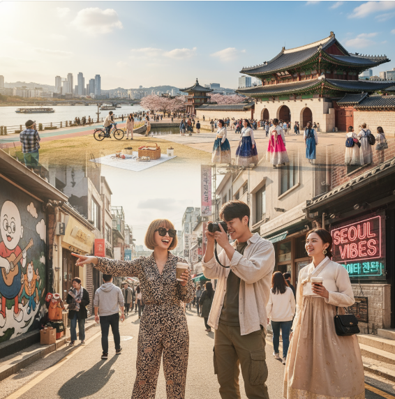 No trip to Seoul is complete without visiting the city’s top landmarks: Namsan Tower, Gyeongbokgung Palace, Bukchon Hanok Village, Myeong-dong, and Dongdaemun Design Plaza (DDP). Here, you’ll find the perfect mix of history and modern culture—ideal for photos and immersive experiences.